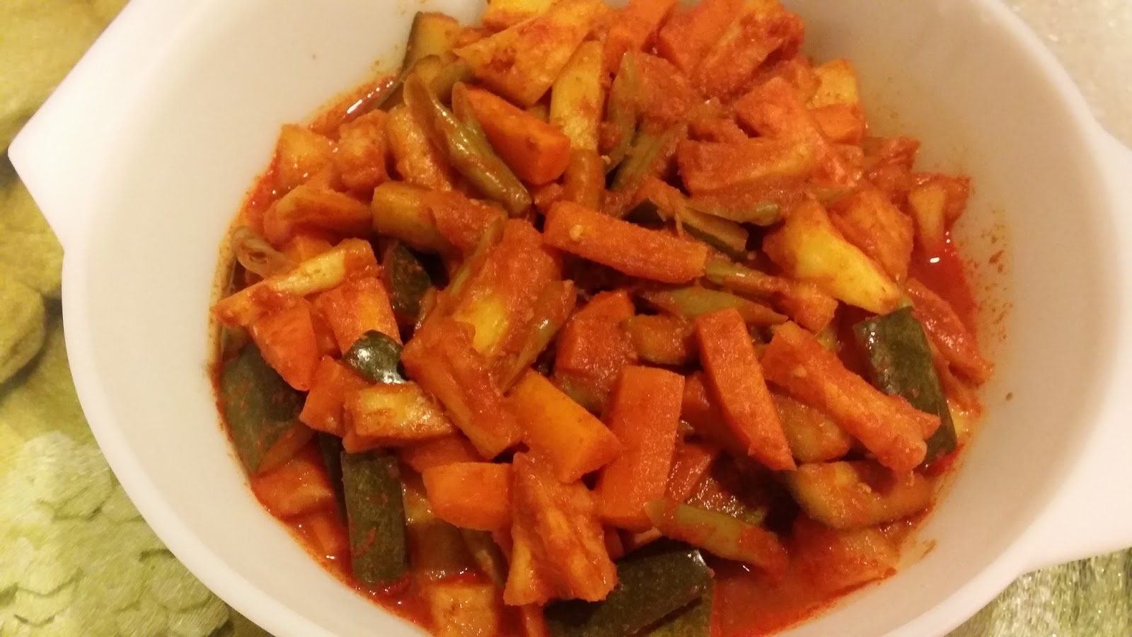 Acar, a must dish for my hubby's family to be served on Chinese New Year Eve reunion dinner. Thus this is my yearly affair, I always cook this dish a week before the reunion dinner. Is tastier if you cook earlier and keep in refrigerator.